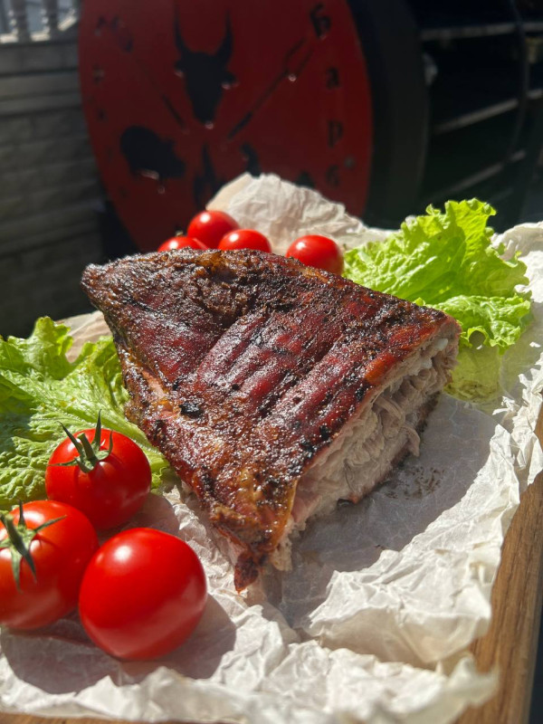 Завжди гаряче, соковите, ніжне. Приготовлене за американською технологією. М’ясо трохи підкопчене і запечене. Смак неповторний і не схожий ні на що. Скуштувавши його раз, ви цей смак не забудете і будете хотіти його знов та знов.